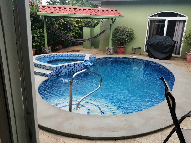 This beautiful home is located in one of our most sought after communities, just 400 yards from the beautiful beaches at Bejuco! Featuring 3 bedrooms, 3.5 bathrooms, and a large open floor plan with a pool, this home also has a single car garage, and each bedroom has its own private en suite bathroom! The living and dining rooms are one enormous open space, with sliding glass doors along the wall facing the pool, allowing in lots of natural light and allowing you to take advantage of the outdoor living space, which is key here in Costa Rica!