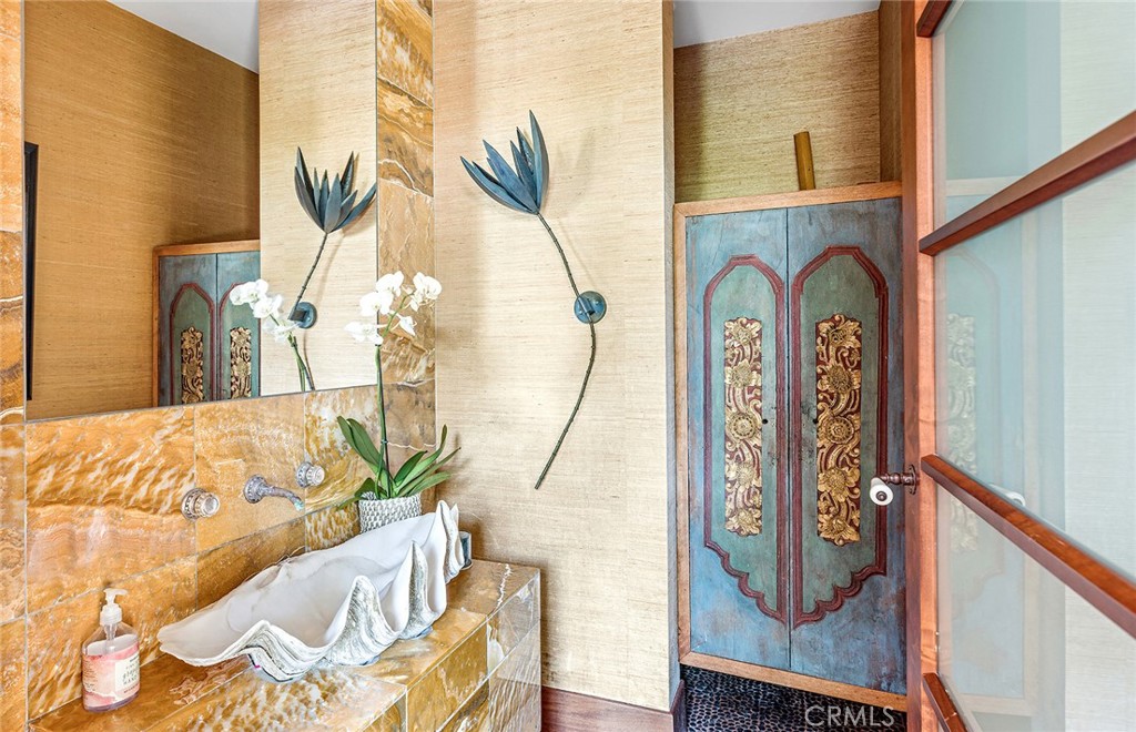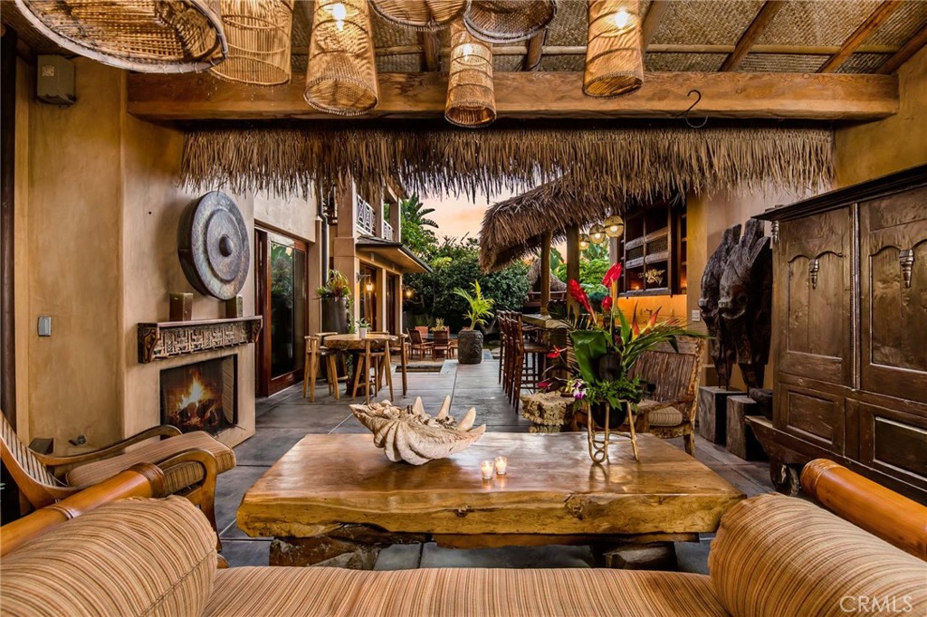 Relax in the sunken living room, by the bridged koi pond, or in the intimate cabana with a fireplace. The upper level offers luxurious bedroom suites with resort-like verandas. With meticulous attention to detail and authentic construction, this home embodies the ultimate in private, resort-style living. Experience the perfect blend of interior and exterior spaces, with tiered levels of exotic finishes that open up to outdoor terraces featuring a pool, spa, outdoor bar, and more. Enjoy privacy and luxury in this unparalleled setting, where every day feels like a vacation.