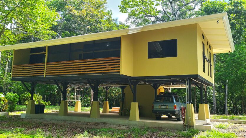 This 130 m² (1,400 ft²) home is elevated 3 meters off the ground for security, ventilation, and flood protection. It was engineered to American construction standards and designed for low-maintenance living in the tropics.